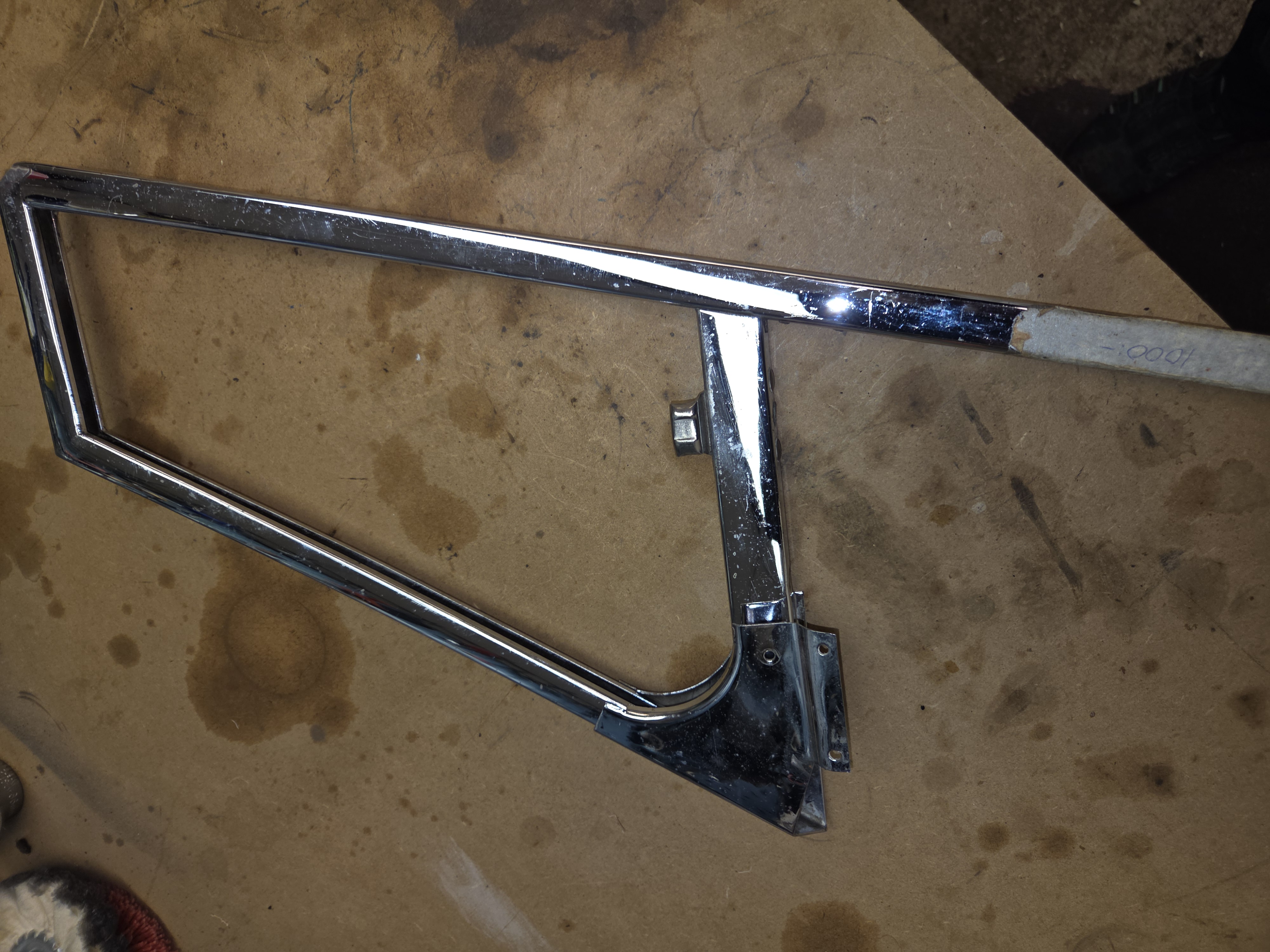 Den jag har är sprucken i övre främre hörnet. När jag nu gör den sista uppfräschningen av bilen skulle det vara snyggt att den är hel.Alternativ: Om du vet någon som kan hårdlöda och någon som utför förkromningar?