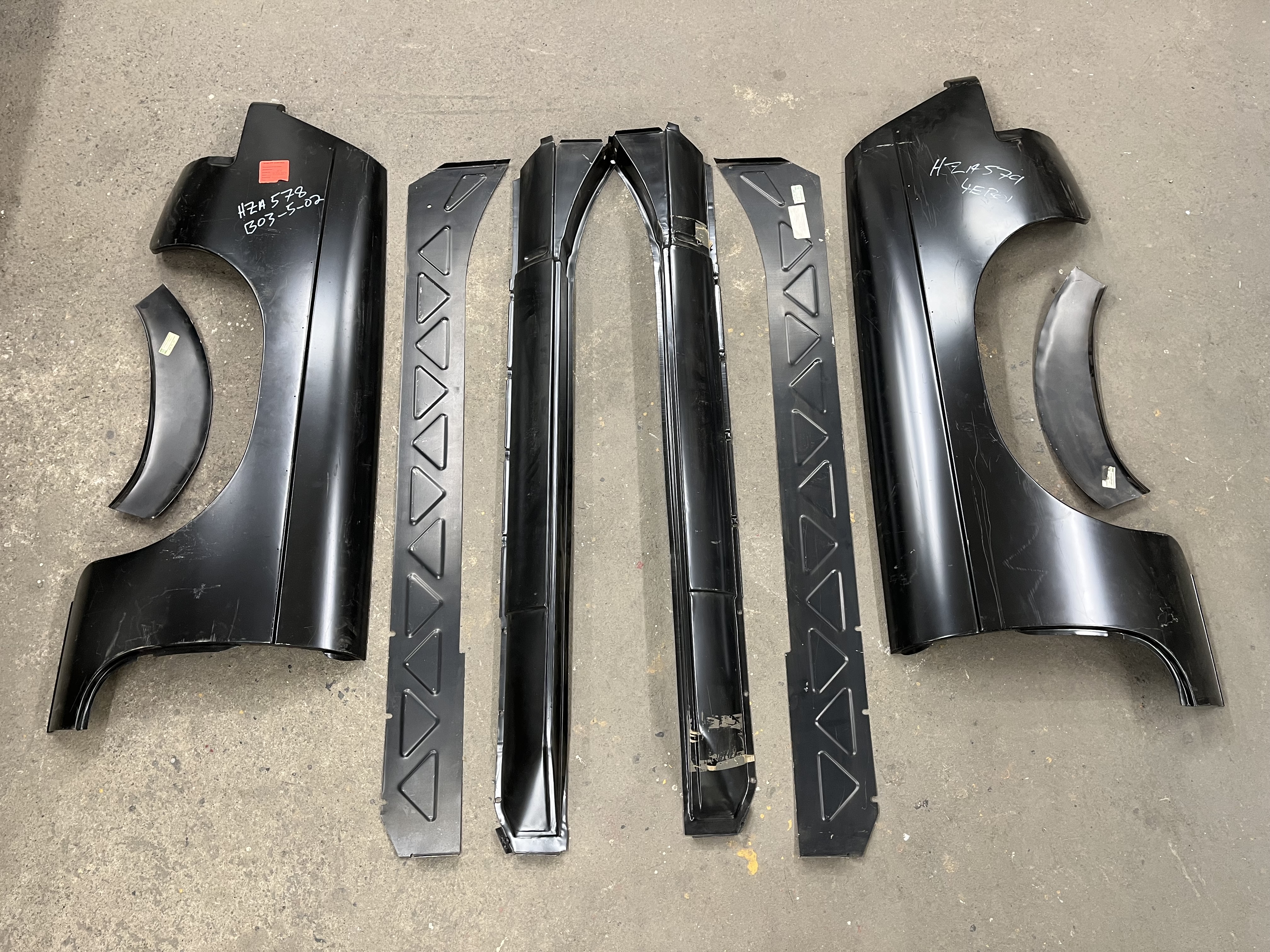 Bakskärmar vä+hö, repbitar hjulhus bak vä+hö, yttertröskel samt mellanvägg tröskel vä+hö. Tillverkat av British Motor Heritage så samma delar som sitter på nytillverkade karosser. Pris? Kolla vad hela kittet kostar i UK och kom med rimligt bud.Janne Andersson, Örebro, 0708-900999